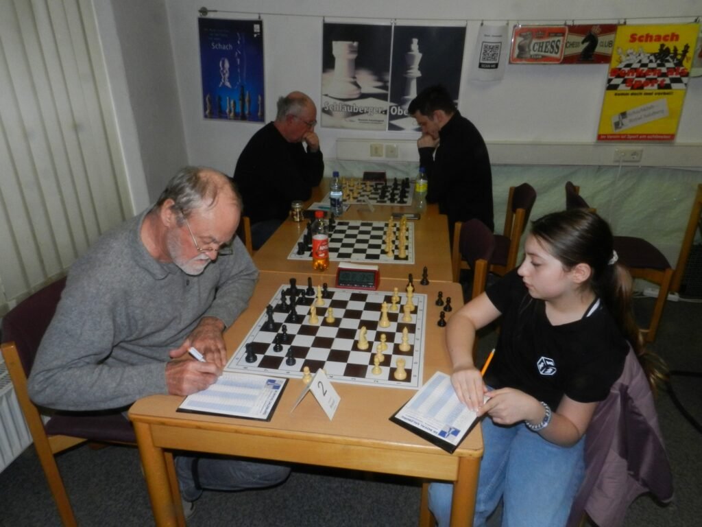 Auf Brett 2 kam es zwischen Daniela Georgywan und Günther Maier zu einer spanischen Partie, wobei Schwarz schon sehr bald in eine Eröffnungsfalle der jungen, talentierten Spielerin tappte, die den schwarzen König alsbald freilegte. Günther versuchte die Partie noch irgendwie zu retten, doch konnnte er das frühe Matt nicht mehr verhindern. 0-1