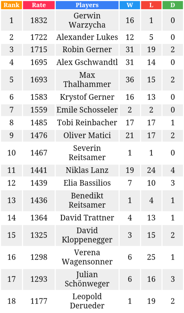 Die neue ASK Kinderschach-Eloliste bringt wieder einige Neuerungen mit sich. So hat sich „Neueinsteiger“ Gerwin Warzycha mit einem Score von