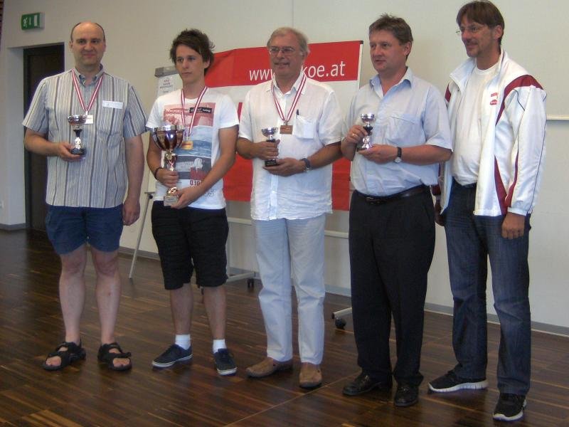 Emanuel Frank (Oberndorf) gewinnt die Salzburger ASKÖ Landesmeisterschaft 2014 vor FM Engelbert Schöppl (Schwarzach) und CM Johann Maierhofer (Mattighofen). Emanuel