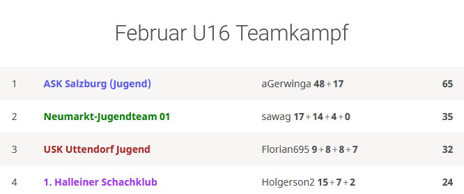 Der Salzburger Schachlandesverband organisiert unter der Leitung von Gerhard Rosenlechner angesichts der aktuellen CoVid19-Situation (erneut) einen U16-Mannschaftskampf auf lichess. Gespielt